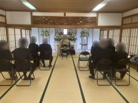 • 13時:開式。葬儀と繰上げ初七日法要を賜り、約40分で閉式